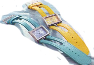 Eine Kreation, bei der Sie die Wahl haben sonnigem Gelb und leuchtendem Türkis – beides sind Farben, die jede winterliche Eintönigkeit vertreiben! Sehr schön auch das jeweils farblich passend gestaltete Zifferblatt in markanter Rechteckform. Das Armband ist aus echtem Leder.