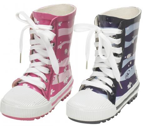 Sehr trendiger Gummistiefel zum Schnürren. Durch die Schnürrsenkel sieht der Gummistiefel sportlich aus. Dünnes Innenfutter aus Baumwoll-Jersey. Mit herausnehmbarer Innensohle. Rutschfeste und robuste Profilsohle. Für die Sicherheit bei Dämmerung sorgt ein Reflektorstreifen. Die Kinderfüsse bleiben bei Regen trocken und warm.
